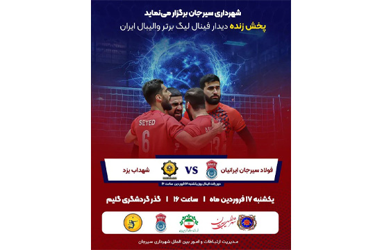 شهرداری سیرجان برگزار می نماید: پخش زنده دیدار فینال لیگ برتر والیبال ایران فولاد سیرجان ایرانیان _ شهداب یزد یکشنبه ۱۷ فروردین ماه