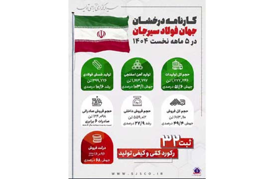 کارنامه درخشان جهان فولاد سیرجان در پنجماهه نخست سال ۱۴۰۴