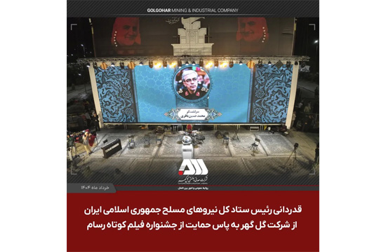 گفتنی است ششمین جشنواره بین المللی فیلم کوتاه دفاع مقدس و مقاومت با حمایت صد در صدی شرکت معدنی و صنعتی گل گهر طی 9 ماه گذشته اجرا و مراسم اختتامیه و اهدا جوایز به برگزیدگان نیز چهارشنبه گذشته 7 خرداد با حضور بیش از 8 هزار و 500 نفر از شهروندان سیرجانی با شور و هیجان بی نظیری در دهکده بزرگ گردشگری گهرپارک سیرجان برگزار شد.