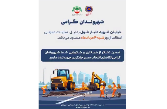 اطلاع رسانی آسفالت خیابان علیار شول