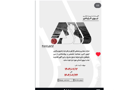 فراخوان شماره 5 شناسایی و جذب نیروی انسانی گل گهر