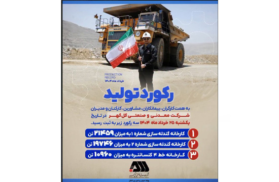 رکورد تولید روزانه کارخانجات شرکت معدنی و صنعتی گل گهر ، در تاریخ یکشنبه 25 خردادماه 1404 روابط عمومی شرکت معدنی و صنعتی گل گهر سایت: