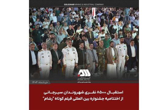 گفتنی است ششمین جشنواره بین المللی فیلم کوتاه دفاع مقدس و مقاومت با حمایت صد در صدی شرکت معدنی و صنعتی گل گهر طی 9 ماه گذشته اجرا و مراسم اختتامیه و اهدا جوایز به برگزیدگان نیز چهارشنبه گذشته 7 خرداد با حضور بیش از 8 هزار و 500 نفر از شهروندان سیرجانی با شور و هیجان بی نظیری در دهکده بزرگ گردشگری گهرپارک سیرجان برگزار شد.